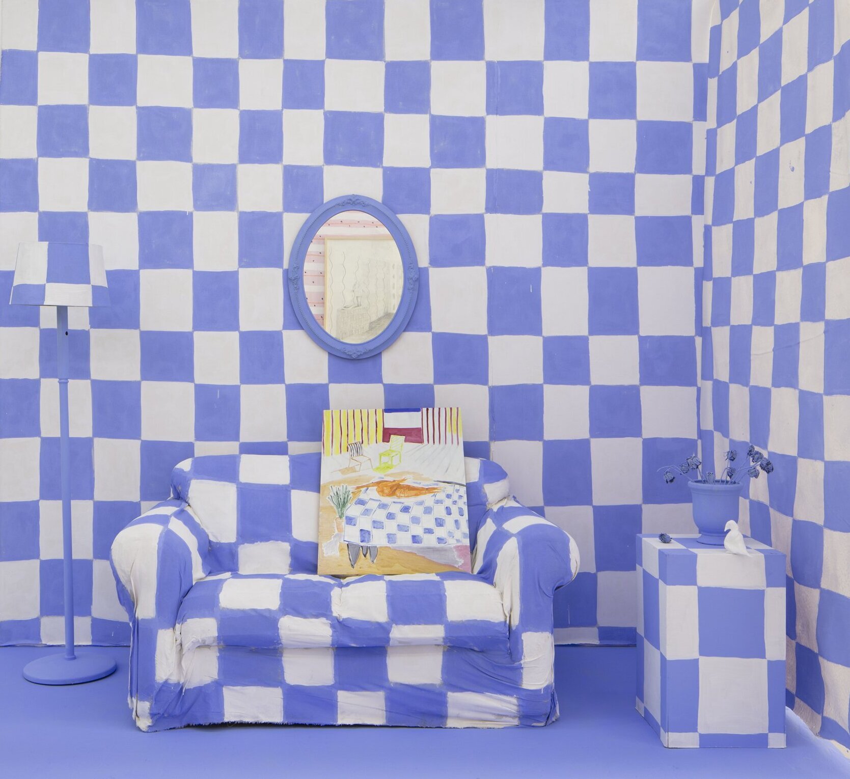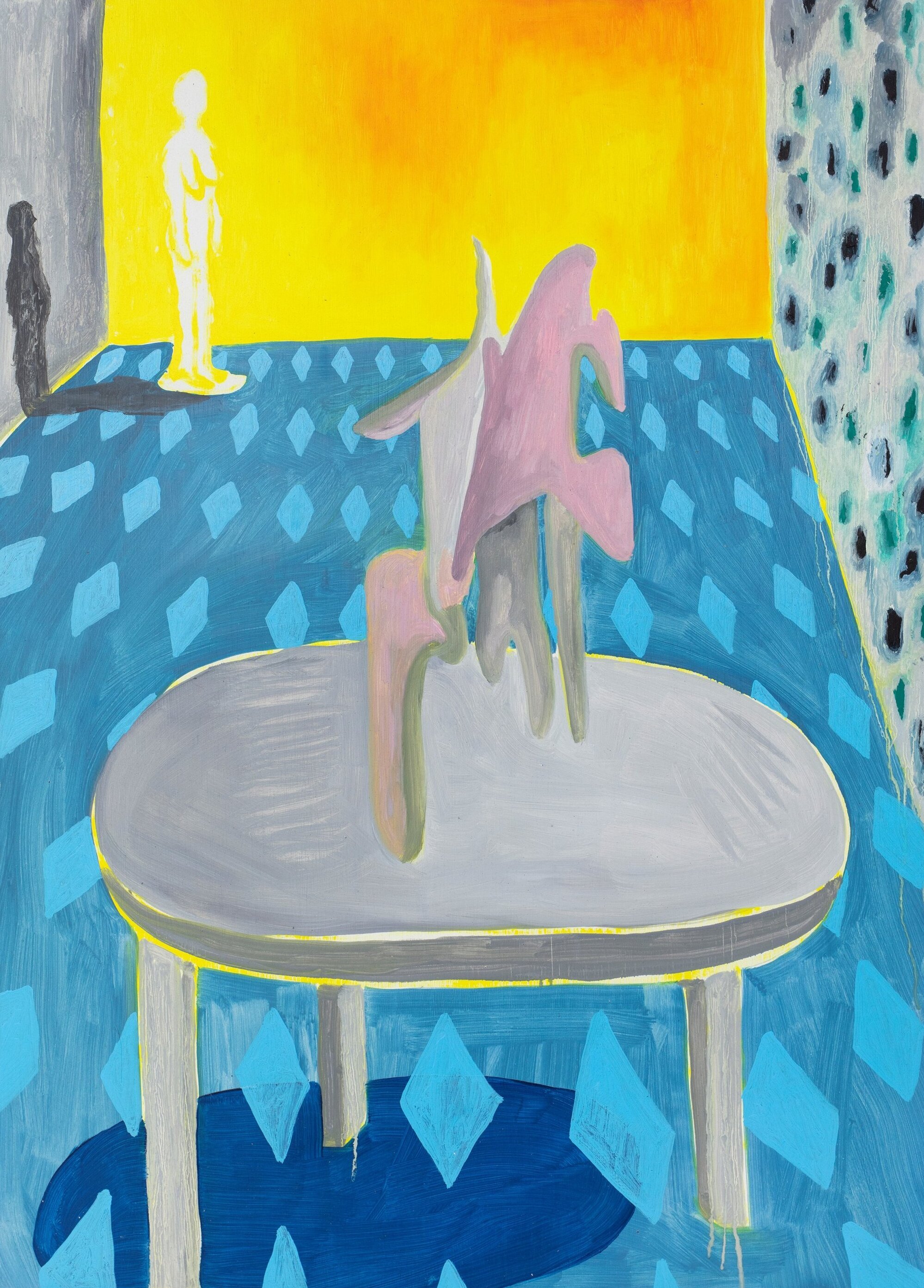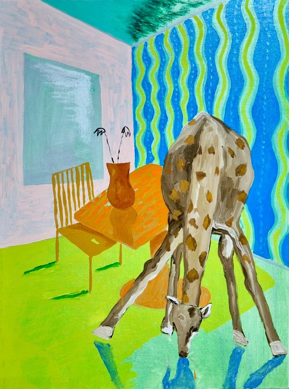 Forte's painting is aspirational and optimistic, with a playful and vibrant approach. His practice dialogues with the pictorial tradition through gestural interventions, unexpected compositions, colorful prints and figurative suggestions, sometimes recalling the use of color, perspective and the exploration of intimacy that characterizes the work of Pierre Bonnard. He seeks to create sensorial experiences in which the viewer can (literally) inhabit, interact and relate. In this way, he manages to dispel the sense of preciousness associated with art, inviting the public to dive into worlds that feel familiar yet novel.